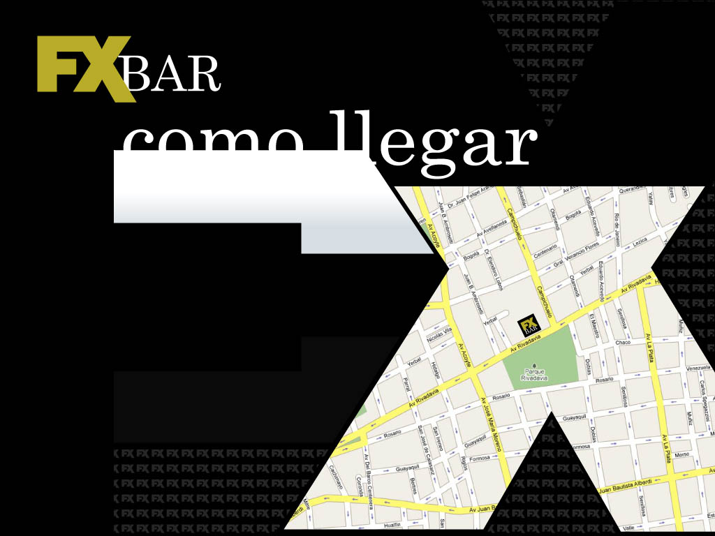 FXbar se encuentra en Av. Rivadavia 4567, en el barrio de Caballito, Cap Fed. En este punto estrategico puede llegar mediante diferentes medios de transporte, consulte la forma mas conveniente para no perderse ninguna de nuestras noches FX.
